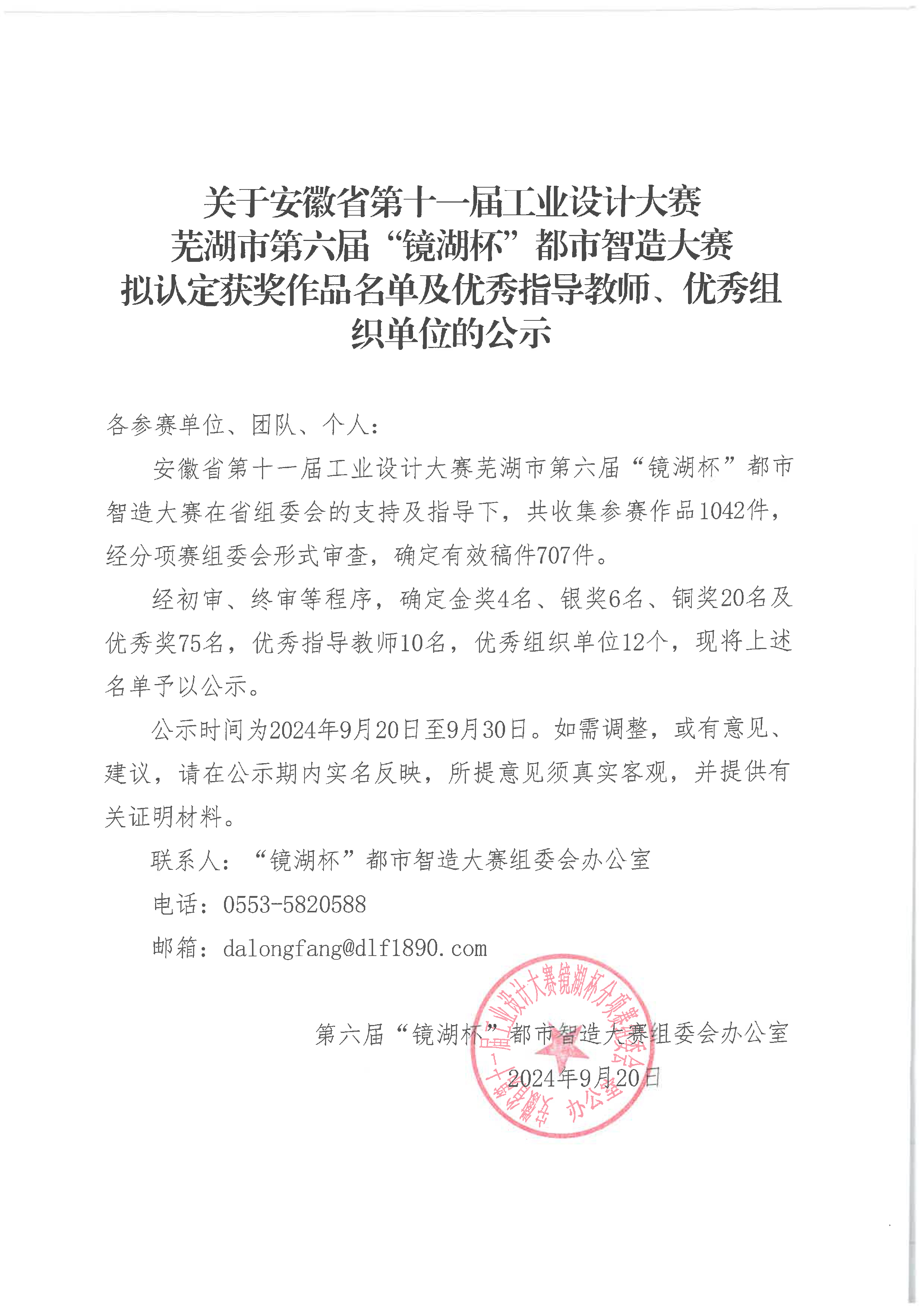 關(guān)于安徽省第十一屆工業(yè)設(shè)計(jì)大賽 蕪湖市第六屆“鏡湖杯”都市智造大賽 擬認(rèn)定獲獎(jiǎng)作品名單及優(yōu)秀指導(dǎo)教師、優(yōu)秀組織單位的公示